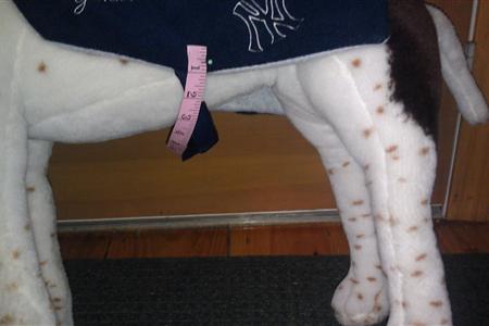 For the correct back length, measure the distance from the base of the neck to the base of the tail. Refer to Picture (A) below
