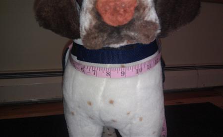 Take a measurement from one front shoulder around the front of the neck to the same spot on the other front shoulder. Refer to Picture (D) below